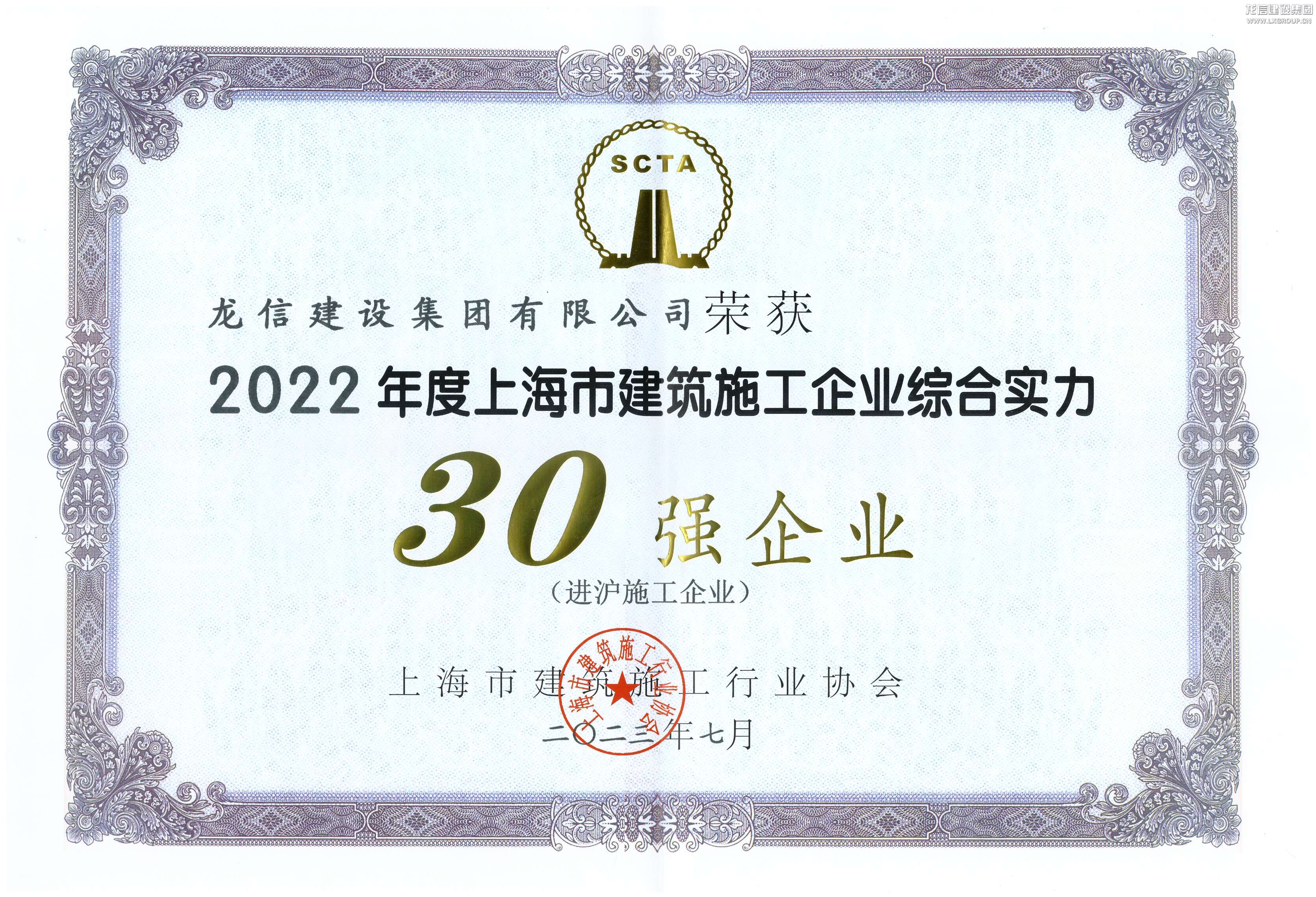2022年度上海市建筑施工企業(yè)綜合實力30強企業(yè)