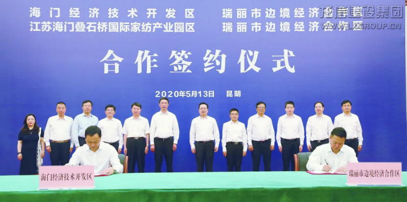 5月13日,海門(mén)經(jīng)濟(jì)技術(shù)開(kāi)發(fā)區(qū)、疊石橋國(guó)際家紡產(chǎn)業(yè)園區(qū)與云南省瑞麗市邊境經(jīng)濟(jì)合作區(qū)合作簽約儀式在昆明舉行。云南省委常委、統(tǒng)戰(zhàn)部長(zhǎng)、副省長(zhǎng)張國(guó)華,海門(mén)市委書(shū)記陳勇,德宏州委書(shū)記、瑞麗試驗(yàn)區(qū)黨工委書(shū)記、管委會(huì)主任趙剛,云南省商務(wù)廳廳長(zhǎng)趙瑞君等共同見(jiàn)證簽約。龍信集團(tuán)黨委書(shū)記、董事長(zhǎng)陳祖新作為海門(mén)市黨政代表團(tuán)企業(yè)家代表出席此次活動(dòng)。